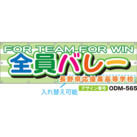【別注】名入れ応援幕(四角型) 全員バレー FOR TEAM FOR WIN (緑) ODM-0566【受注生産】