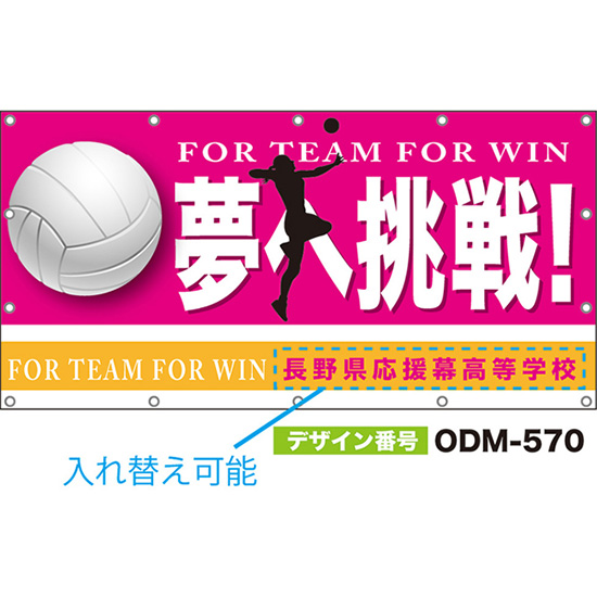 【別注】名入れ応援幕(横型) 夢へ挑戦! FOR TEAM FOR WIN (ピンク) ODM-0569【受注生産】