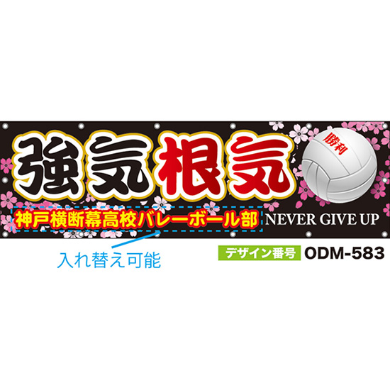 【別注】名入れ応援幕(四角型) 強気根気 NEVER GIVE UP (黒) ODM-0584【受注生産】