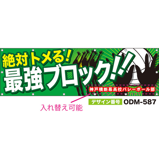 【別注】名入れ応援幕(四角型) 絶対トメる!最強ブロック!! (緑) ODM-0588【受注生産】