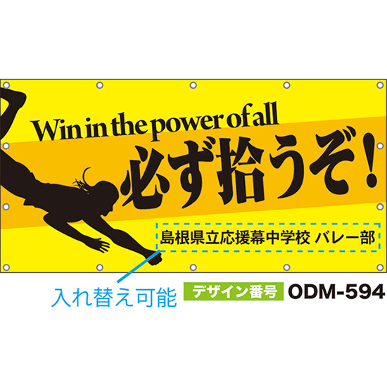 【別注】名入れ応援幕(横型) 必ず拾うぞ!Win in the power of all (黄) ODM-0593【受注生産】