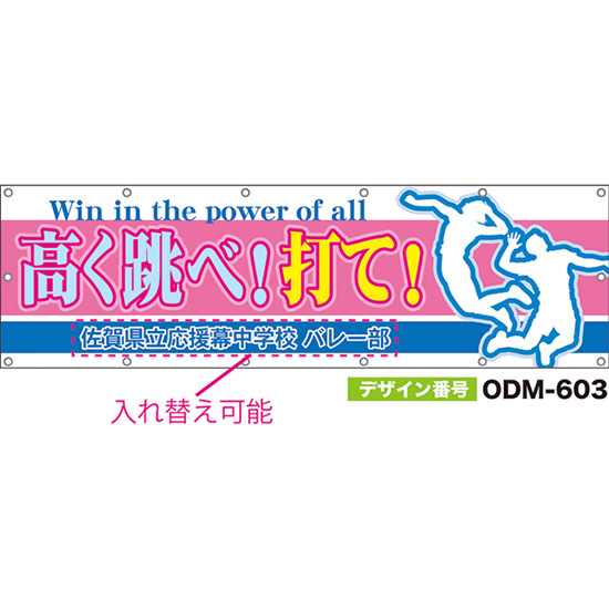 【別注】名入れ応援幕(四角型) 高く跳べ!打て!Win in the power of all (ピンク) ODM-0604【受注生産】