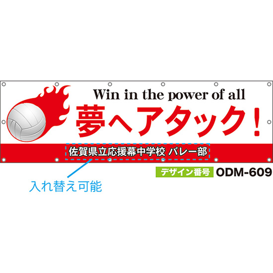 【別注】名入れ応援幕(四角型) 夢へアタック!Win in the power of all (白) ODM-0610【受注生産】