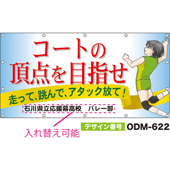 【別注】名入れ応援幕(横型) コートの頂点を目指せ 走って、跳んで、アタック放て! (白) ODM-0621【受注生産】