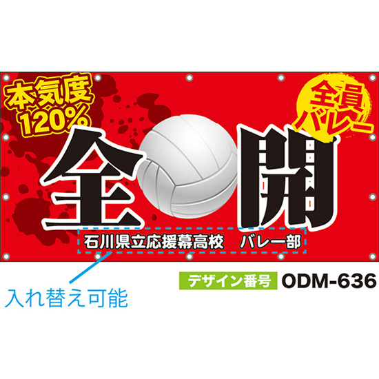 【別注】名入れ応援幕(横型) 全開 本気度120% 全員バレー (赤) ODM-0635【受注生産】