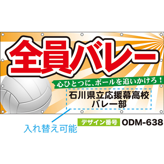 【別注】名入れ応援幕(横型) 全員バレー 心ひとつに、ボールを追いかけろ! (橙) ODM-0637【受注生産】