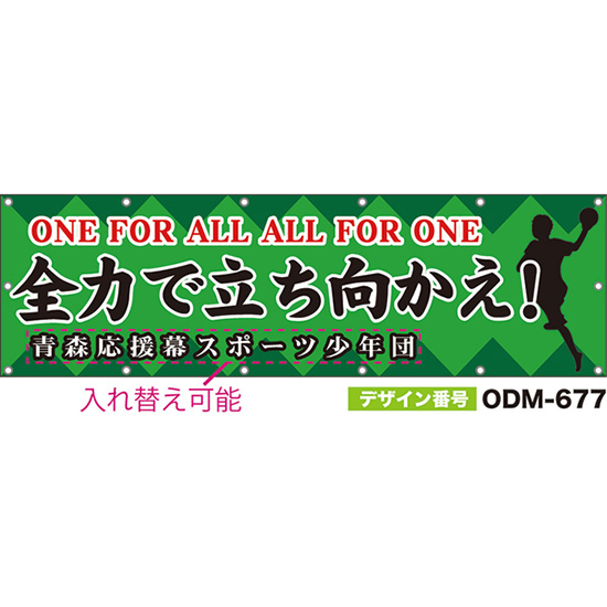 【別注】名入れ応援幕(四角型) 全力で立ち向かえ!ONE FOR ALL ALL FOR ONE (緑) ODM-0678【受注生産】