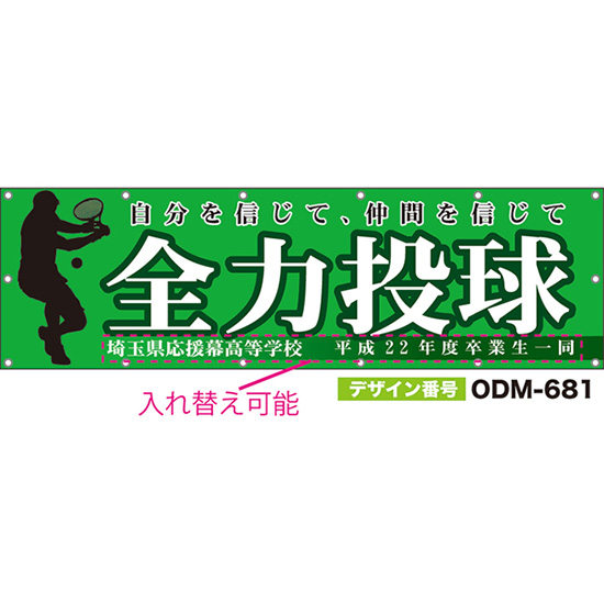 【別注】名入れ応援幕(四角型) 全力投球 自分を信じて、仲間を信じて (緑) ODM-0682【受注生産】