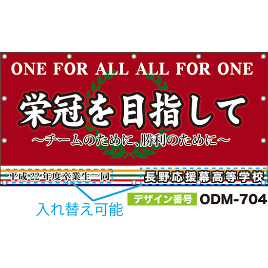 【別注】名入れ応援幕(横型) 栄冠を目指して ONE FOR ALL ALL FOR ONE (赤) ODM-0703【受注生産】