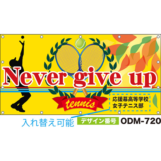 【別注】名入れ応援幕(横型) Never give up (黄) ODM-0719【受注生産】