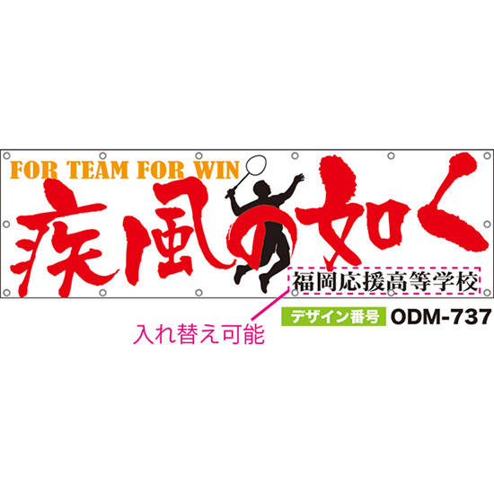 【別注】名入れ応援幕(四角型) 疾風の如く FOR TEAM FOR WIN (白) ODM-0738【受注生産】