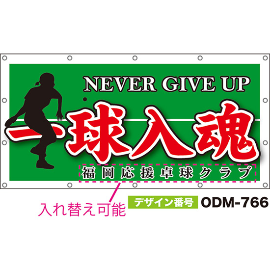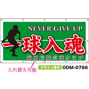 【別注】名入れ応援幕(横型) 一球入魂 NEVER GIVE UP (緑) ODM-0765【受注生産】