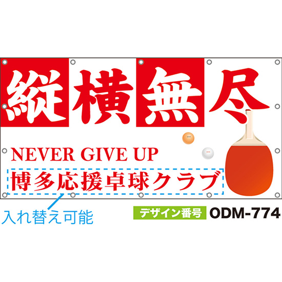 【別注】名入れ応援幕(横型) 縦横無尽 NEVER GIVE UP (白) ODM-0773【受注生産】