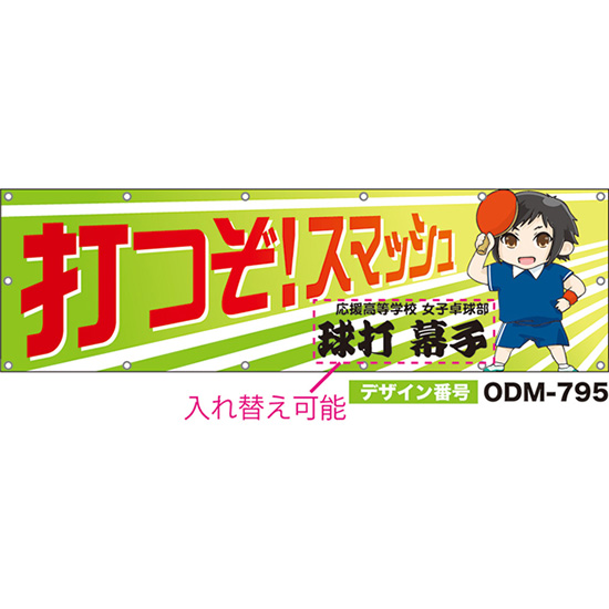 【別注】名入れ応援幕(四角型) 打つぞ!スマッシュ (黄緑) ODM-0796【受注生産】