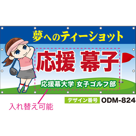 【別注】名入れ応援幕(横型) 夢へのティーショット (青) ODM-0823【受注生産】