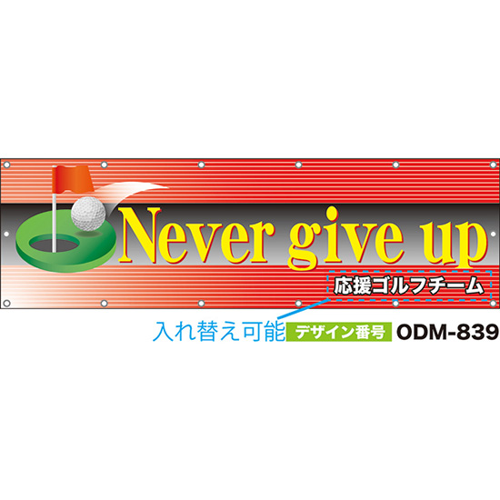 【別注】名入れ応援幕(四角型) Never give up (赤) ODM-0840【受注生産】