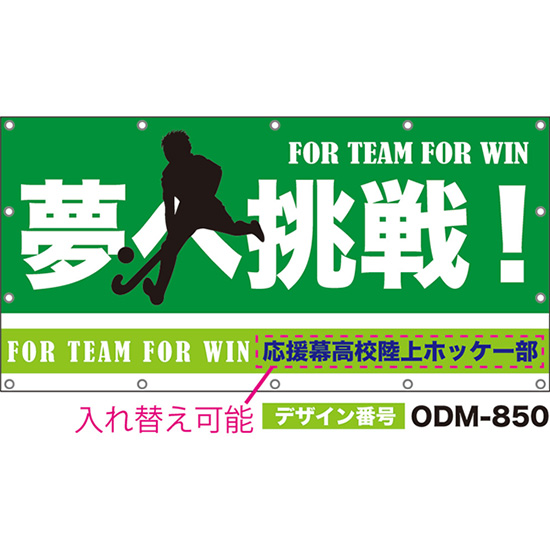 【別注】名入れ応援幕(横型) 夢へ挑戦! FOR TEAM FOR WIN (緑) ODM-0849【受注生産】