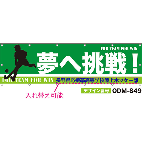 【別注】名入れ応援幕(四角型) 夢へ挑戦! FOR TEAM FOR WIN (緑) ODM-0850【受注生産】