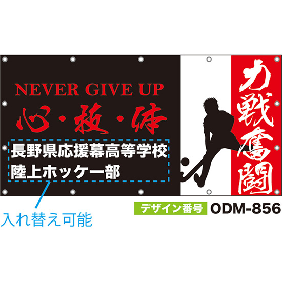 【別注】名入れ応援幕(横型) 心・技・体 力戦奮闘 NEVER GIVE UP (黒) ODM-0855【受注生産】