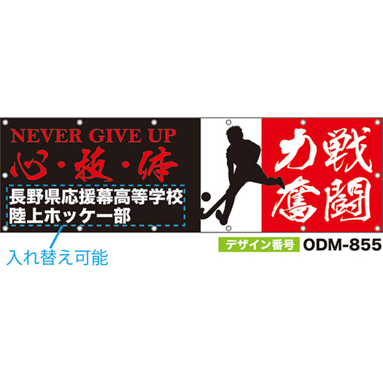 【別注】名入れ応援幕(四角型) 心・技・体 力戦奮闘 NEVER GIVE UP (黒) ODM-0856【受注生産】