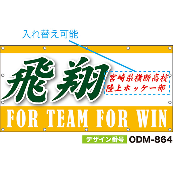 【別注】名入れ応援幕(横型) 飛翔 FOR TEAM FOR WIN (黄) ODM-0863【受注生産】