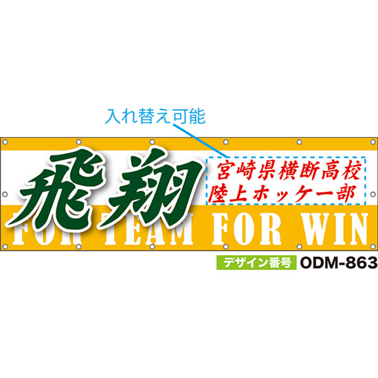 【別注】名入れ応援幕(四角型) 飛翔 FOR TEAM FOR WIN (黄) ODM-0864【受注生産】