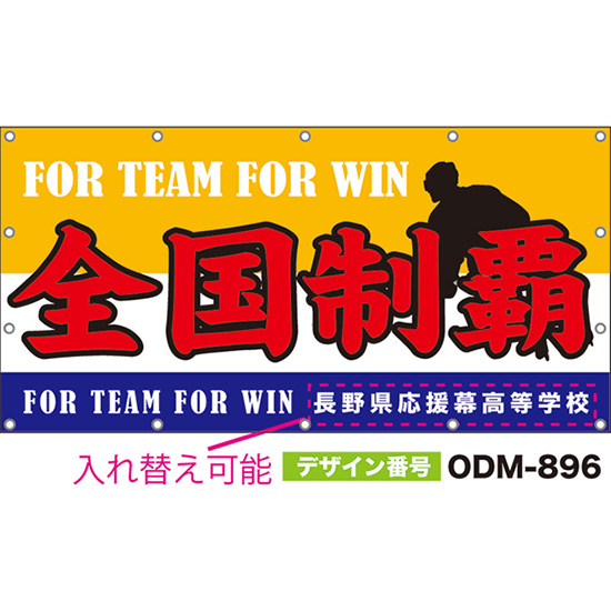 【別注】名入れ応援幕(横型) 全国制覇 FOR TEAM FOR WIN (橙) ODM-0895【受注生産】
