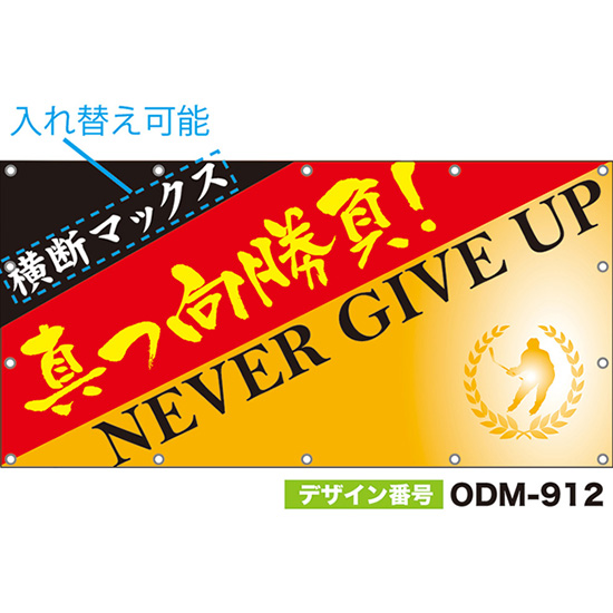 【別注】名入れ応援幕(横型) 真っ向勝負! NEVER GIVE UP (黄) ODM-0911【受注生産】