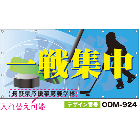 【別注】名入れ応援幕(横型) 一戦集中 必勝 (水色) ODM-0923【受注生産】