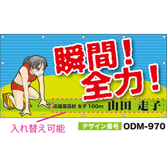 【別注】名入れ応援幕(横型) 瞬間!全力! (水色) ODM-0969【受注生産】