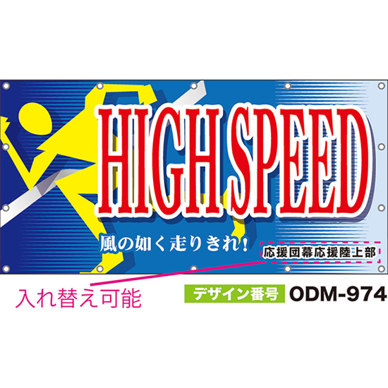 【別注】名入れ応援幕(横型) HIGH SPEED 風の如く走りきれ! (青) ODM-0973【受注生産】