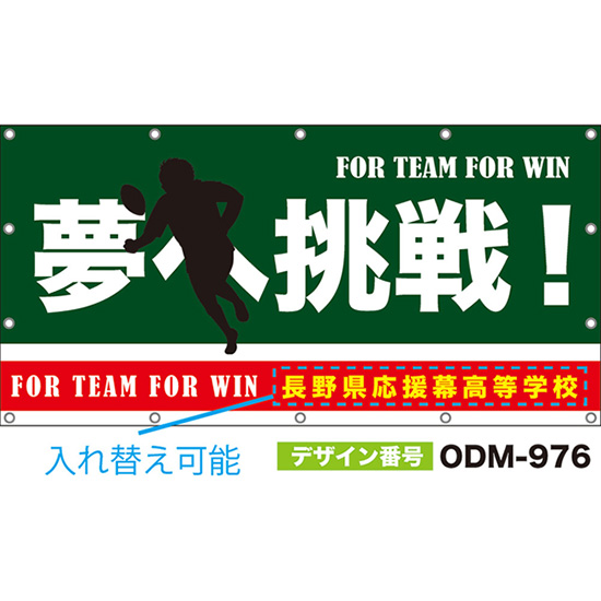 【別注】名入れ応援幕(横型) 夢へ挑戦! FOR TEAM FOR WIN (緑) ODM-0975【受注生産】