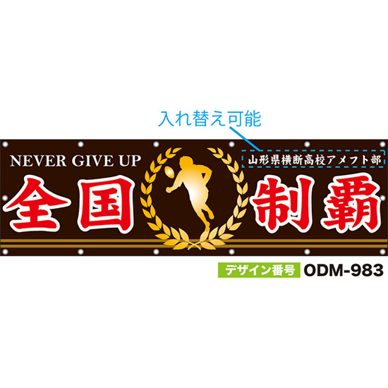 【別注】名入れ応援幕(四角型) 全国制覇 NEVER GIVE UP (茶) ODM-0984【受注生産】