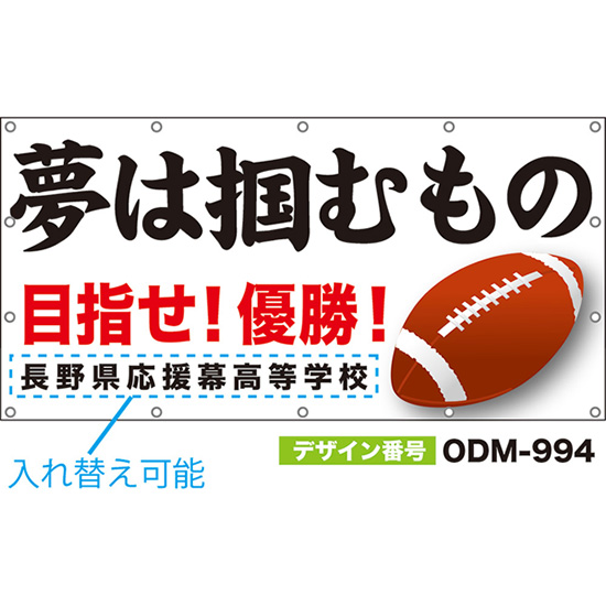 【別注】名入れ応援幕(横型) 夢は掴むもの 目指せ!優勝! (白) ODM-0993【受注生産】