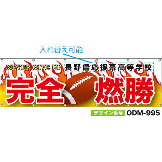 【別注】名入れ応援幕(四角型) 完全燃勝 NEVER GIVE UP (橙) ODM-0996【受注生産】