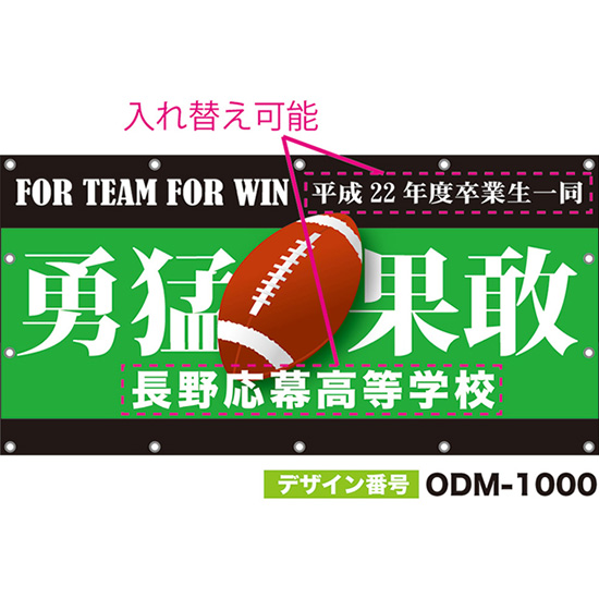 【別注】名入れ応援幕(横型) 勇猛果敢 FOR TEAM FOR WIN (緑) ODM-0999【受注生産】