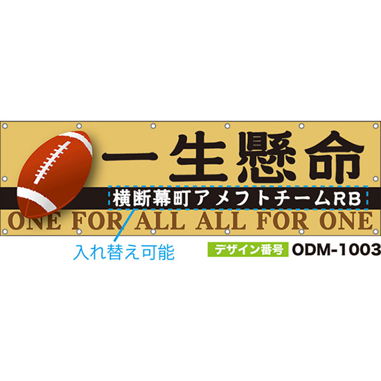 【別注】名入れ応援幕(四角型) 一生懸命 ONE FOR ALL ALL FOR ONE チームのために、勝利のために (ベージュ) ODM-1004【受注生産】