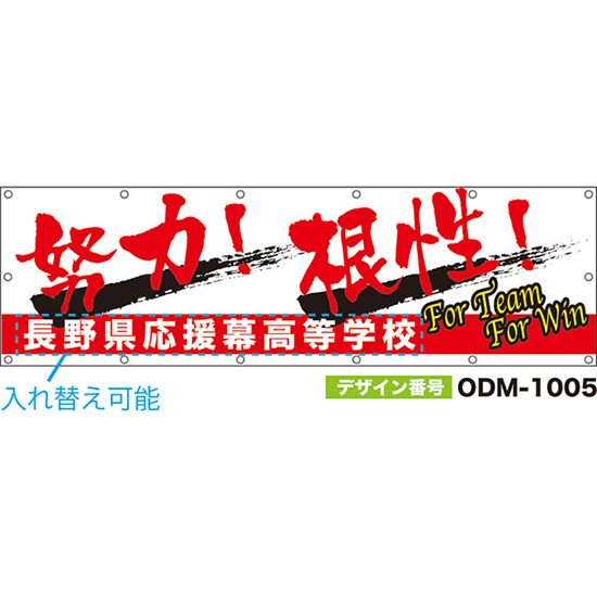 【別注】名入れ応援幕(四角型) 努力!根性!For Team For Win (白) ODM-1006【受注生産】