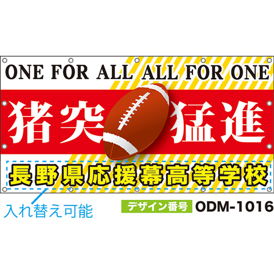 【別注】名入れ応援幕(横型) 猪突猛進 ONE FOR ALL ALL FOR ONE (赤) ODM-1015【受注生産】