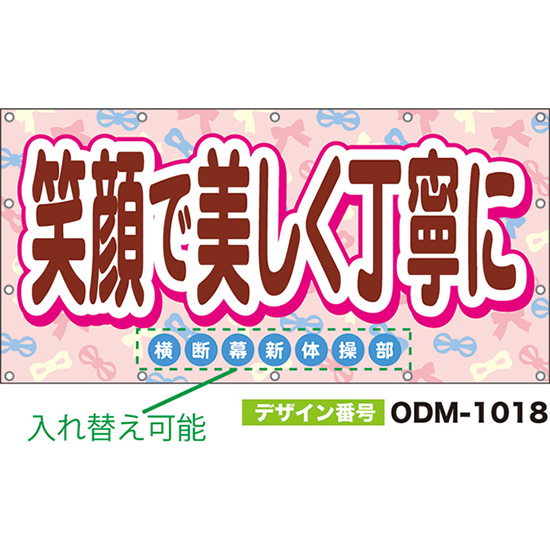 【別注】名入れ応援幕(横型) 笑顔で美しく丁寧に (ピンク) ODM-1017【受注生産】