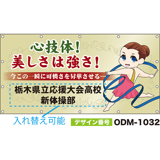 【別注】名入れ応援幕(横型) 心技体!美しさは強さ!今この一瞬に可憐さを昇華させる… (ベージュ) ODM-1031【受注生産】