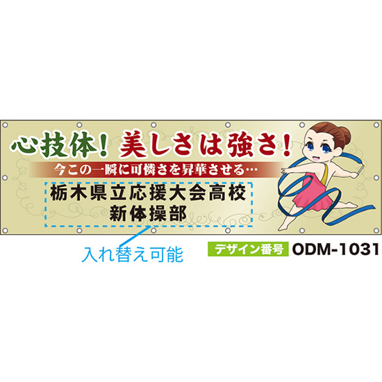 【別注】名入れ応援幕(四角型) 心技体!美しさは強さ!今この一瞬に可憐さを昇華させる… (ベージュ) ODM-1032【受注生産】