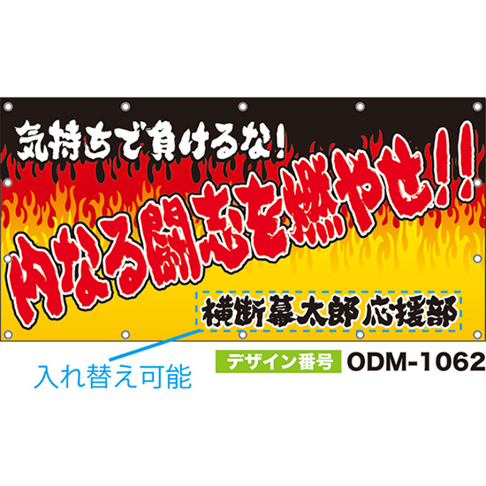 【別注】名入れ応援幕(横型) 内なる闘志を燃やせ!気持ちで負けるな! (黒・橙) ODM-1061【受注生産】
