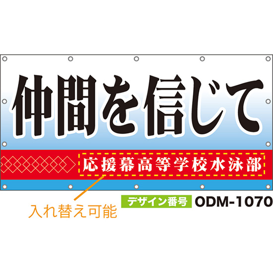 【別注】名入れ応援幕(横型) 仲間を信じて (水色) ODM-1069【受注生産】