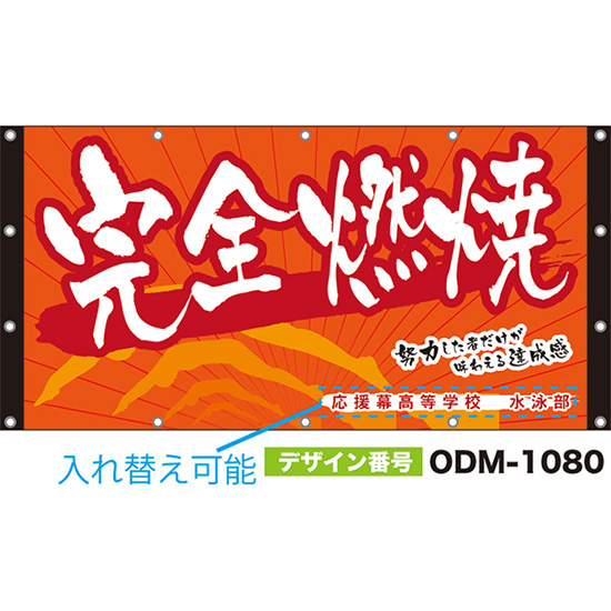 【別注】名入れ応援幕(横型) 完全燃焼 努力した者だけが味わえる達成感 (橙) ODM-1079【受注生産】