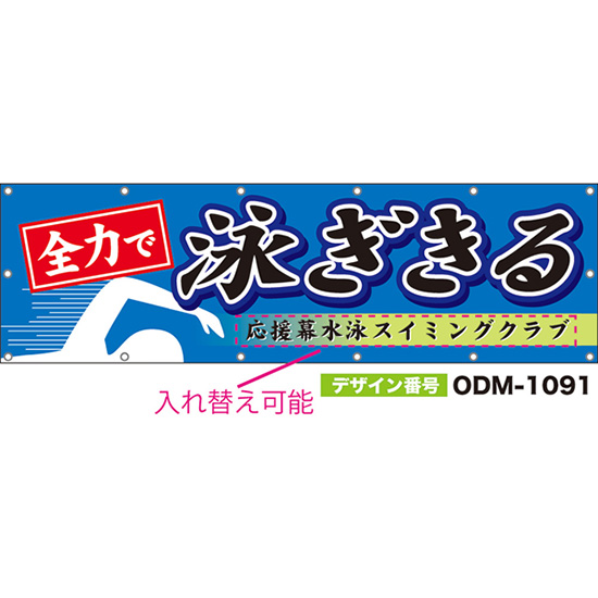 【別注】名入れ応援幕(四角型) 全力で泳ぎきる (青) ODM-1092【受注生産】