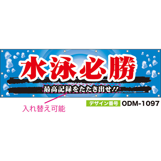 【別注】名入れ応援幕(四角型) 水泳必勝 (青) ODM-1098【受注生産】
