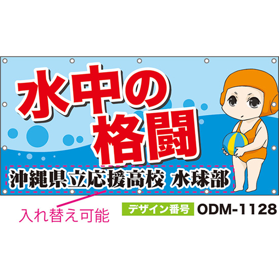 【別注】名入れ応援幕(横型) 水中の格闘 (水色) ODM-1127【受注生産】