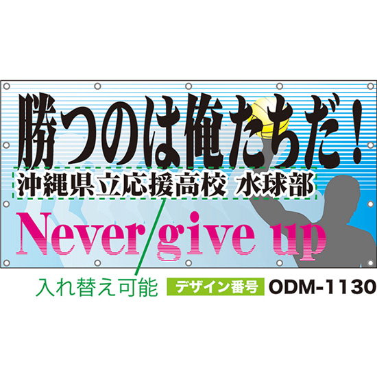 【別注】名入れ応援幕(横型) 勝つのは俺たちだ!Never give up (水色) ODM-1129【受注生産】