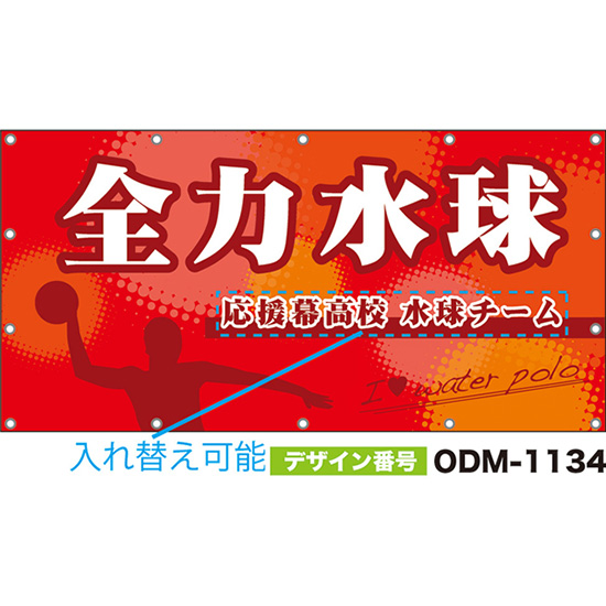 【別注】名入れ応援幕(横型) 全力水球 I love water polo (赤) ODM-1133【受注生産】